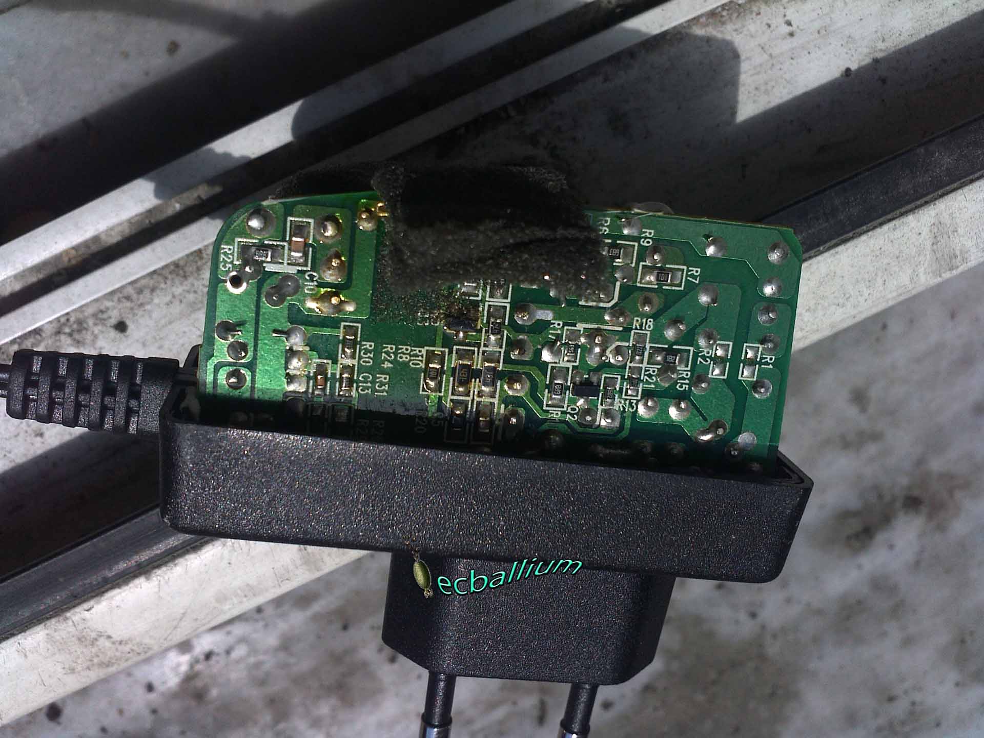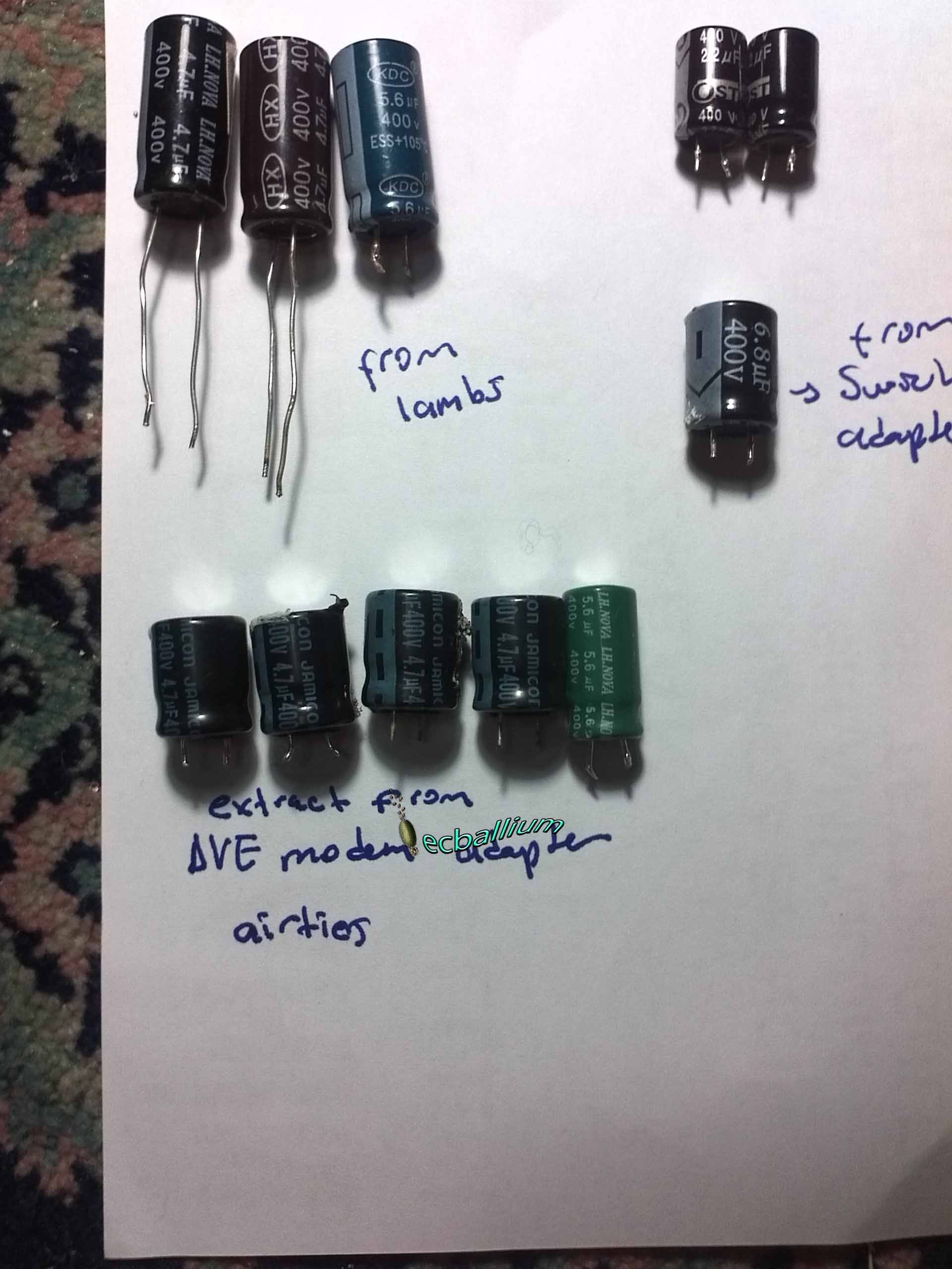 Evde bozuk diğer adaptörleri de kontrol ettim ve hepsinde aynı sorun.. 400V luk kapasitörler kirişi  kırmış.