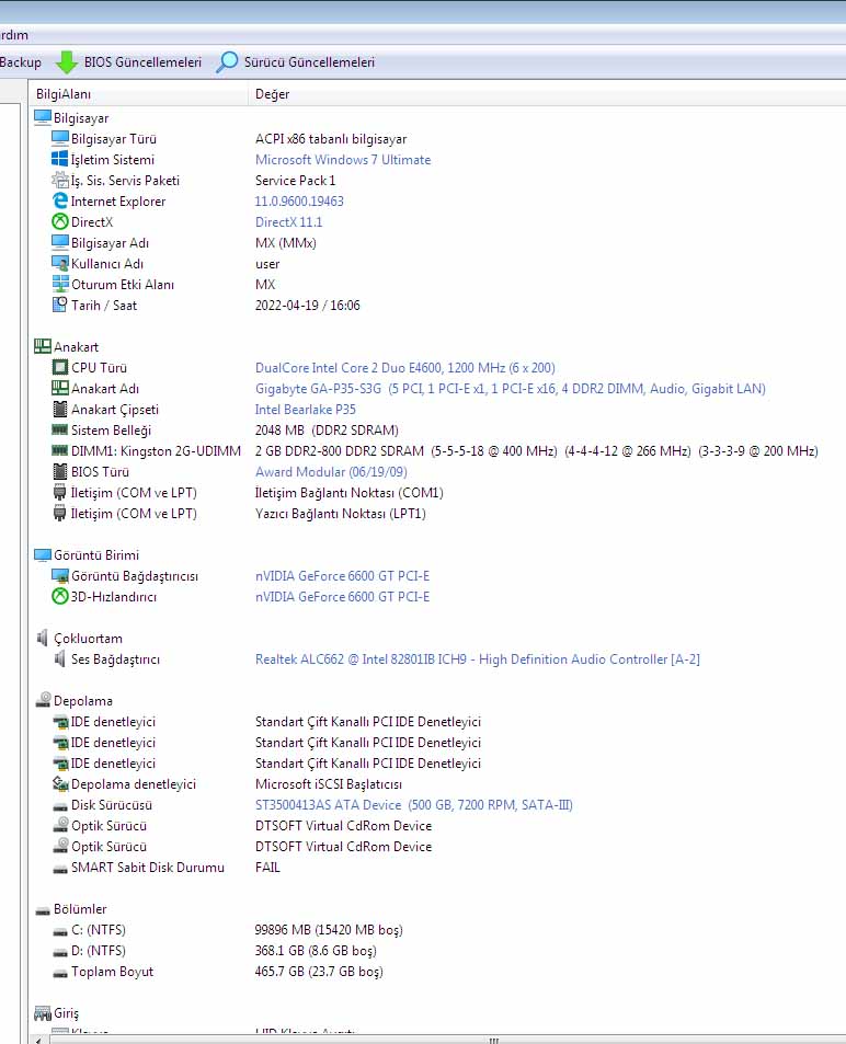 Gigabyte 965p-s3 anakart + E4400 işlemci |