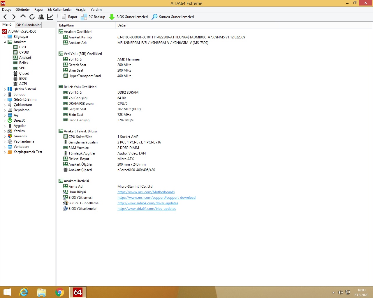 MSI K9N6SGM-V Ms-7309 940 Pin DDR2 AMD Anakart nVidia çipsetli Crea Çıkışlı