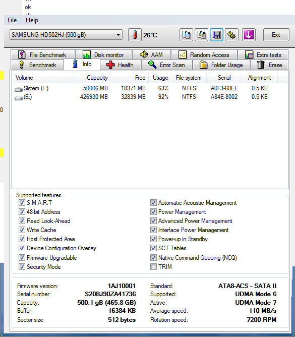 SAMSUNG HD502HJ 500 GB SORUNSUZ HARD DİSK