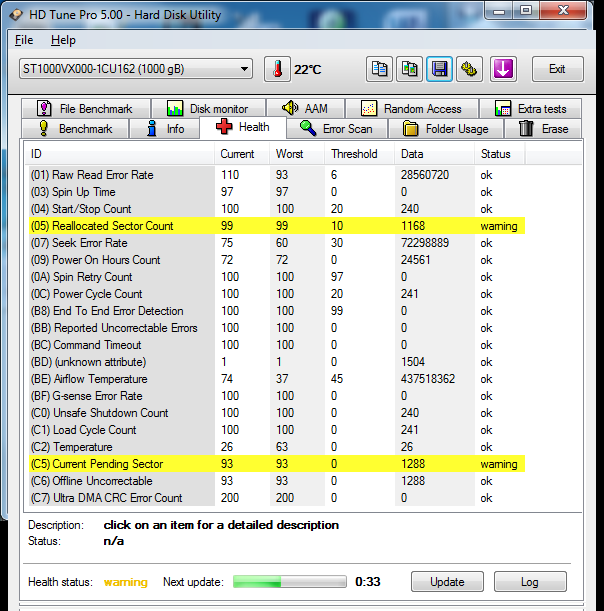 Seagate ST31000340NS 1 TB bad sektörlü hard disk |