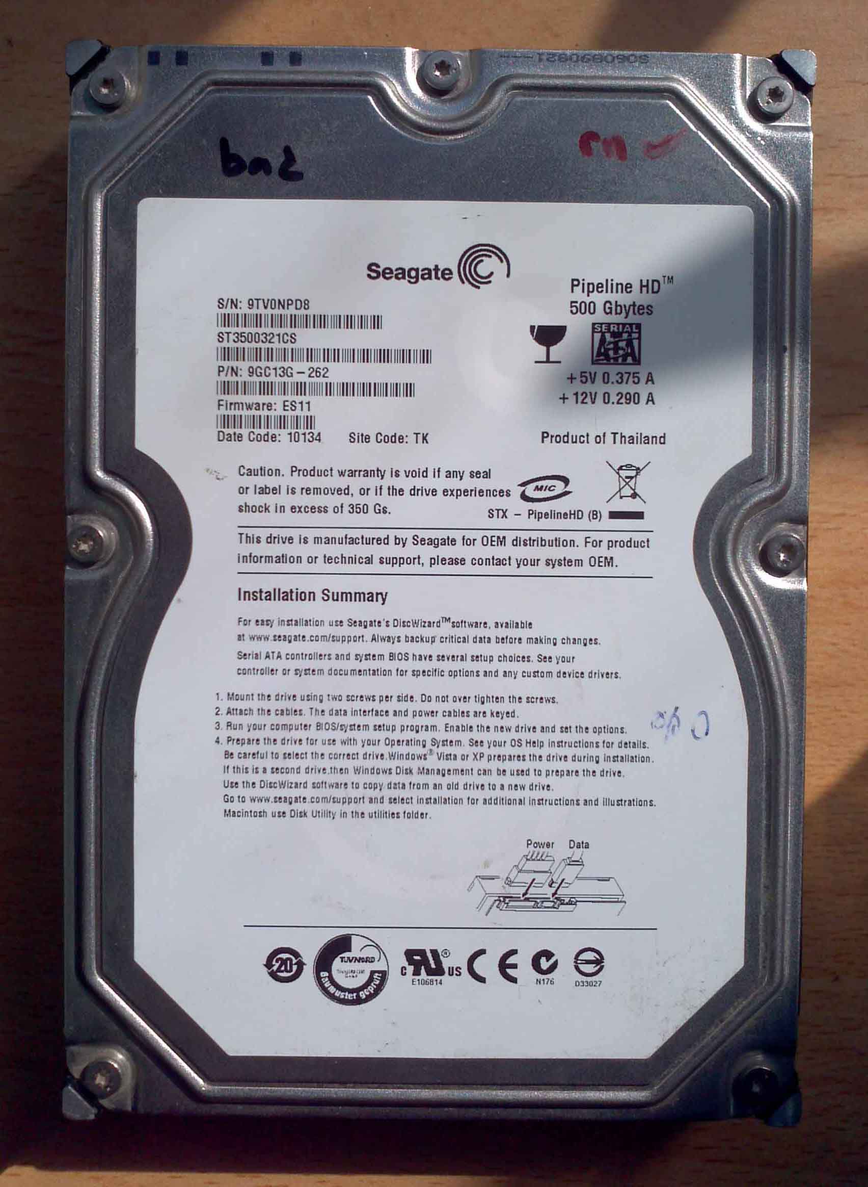 SEAGATE ST3500321CS Pipeline HD 500GB SATA Hard